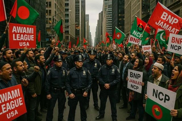 এই পাল্টাপাল্টি কর্মসূচির কারণে নিউইয়র্কের বাংলাদেশ কমিউনিটিতে এক ধরনের থমথমে পরিস্থিতি তৈরি হয়েছে এবং সবাই পরিস্থিতি নিবিড়ভাবে পর্যবেক্ষণ করছেন।