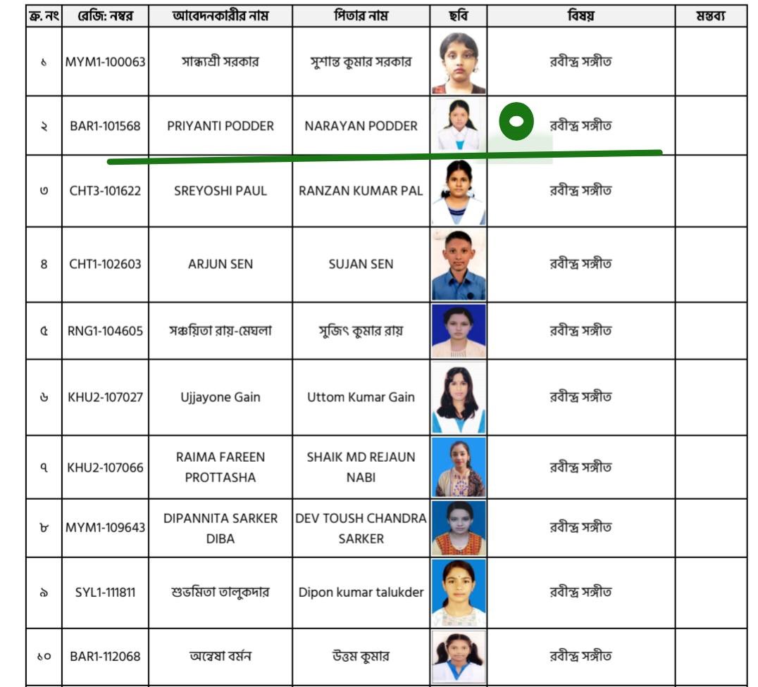পরবর্তীতে ঢাকায় চুরান্ত বাচাই পর্বে রবীন্দ্র সংগীত প্রতিযোগীতায় সারা দেশের মধ্যে সেরা দশে দ্বিতীয় স্থান লাভ করে। রবীন্দ্র সংগীত প্রতিযোগীতায় সারা দেশের ৫২ জন প্রতিযোগী অংশ গ্রহন করে। গত সোমবার বাংলাদেশ টেলিভিশনের স্টুডিওতে এ প্রতিযোগীতা অনুষ্ঠিত হয়।