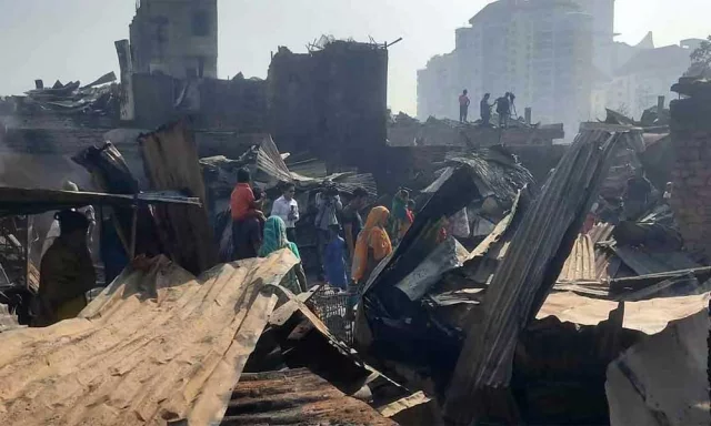 ঢাকার কড়াইল বস্তি। গতকাল মঙ্গলবার (২৫ নভেম্বর) সন্ধ্যা সোয়া ৫টা। হঠাৎ একটি ঘর থেকে আগুনের ফুলকি উঠতেই মুহূর্তে ছড়িয়ে পড়লো লেলিহান শিখা। ঘিঞ্জি গলি, প্লাস্টিক-টিন-কাঠের ঘর, শুষ্ক হাওয়া – সব মিলিয়ে আগুন যেন দানব হয়ে গিলে নিলো পুরো বস্তির দেড় হাজারের বেশি ঘর। রাত সাড়ে ১০টার দিকে আগুন নিয়ন্ত্রণে এলেও ততক্ষণে সব শেষ।