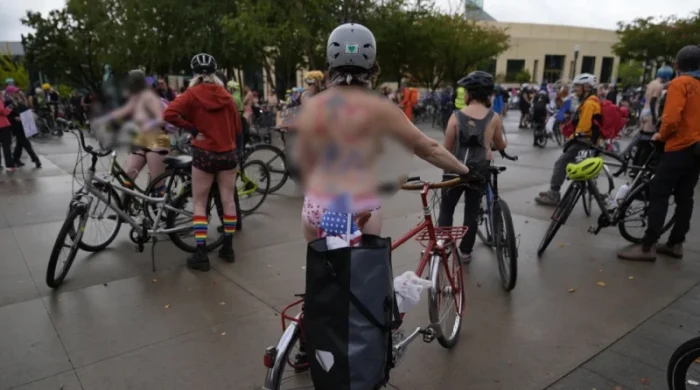 মার্কিন প্রেসিডেন্ট ডোনাল্ড ট্রাম্প প্রশাসনের বিরুদ্ধে প্রতিবাদ জানাতে নগ্ন অবস্থায় সাইকেল র্যালি বের করেছেন বিক্ষোভকারীরা। এমনই এক ব্যতিক্রমী দৃশ্য দেখা গেছে যুক্তরাষ্ট্রের ওরেগন অঙ্গরাজ্যের পোর্টল্যান্ড শহরে। রবিবার অনুষ্ঠিত এই কর্মসূচিতে