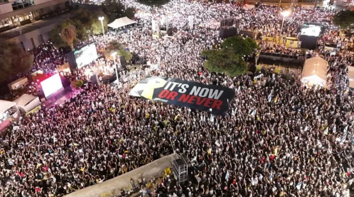 গাজা যুদ্ধের অবসানের জন্য যুক্তরাষ্ট্র নেতৃত্বাধীন প্রস্তাব এগিয়ে যাওয়ার প্রেক্ষাপটে যুদ্ধবিরতি চুক্তির সমর্থনে তেল আবিবের রাস্তায় নেমেছে হাজার হাজার ইসরায়েলি। শনিবার (৪ অক্টোবর) রাতে বিক্ষোভকারীরা অবিলম্বে যুদ্ধবিরতি কার্যকর করে অবশিষ্ট