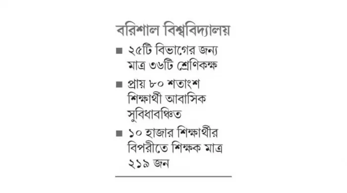 কীর্তনখোলা নদীর তীরে মনোমুগ্ধকর পরিবেশে ২০১১ সালে প্রতিষ্ঠিত হয় বরিশাল বিশ্ববিদ্যালয়। আজ ২২ ফেব্রুয়ারি এই বিশ্ববিদ্যালয় ১৫ বছর পেরিয়ে ১৬তম বছরে পদার্পণ করেছে। অথচ অবকাঠামোগত সীমাবদ্ধতা, শিক্ষক সংকট, আধুনিক গবেষণাগারের