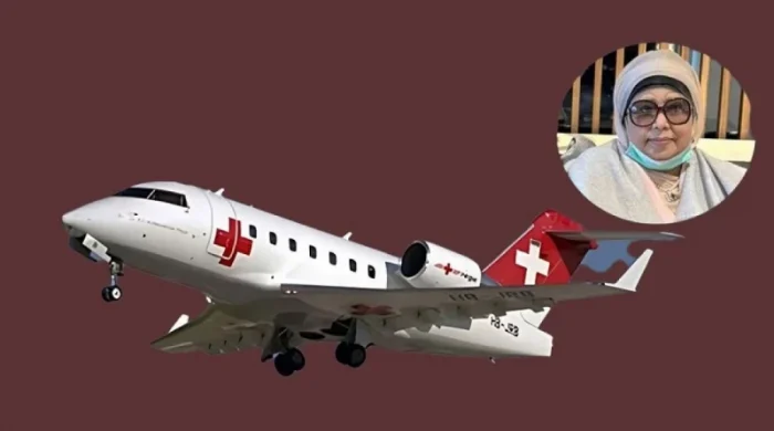 গুরুতর অসুস্থ বিএনপি চেয়ারপারসন খালেদা জিয়াকে উন্নত চিকিৎসায় লন্ডন নিয়ে যেতে জার্মান থেকে ভাড়া করা এয়ার অ্যাম্বুলেন্সটি মঙ্গলবার সকাল ৮টায় হযরত শাহজালাল আন্তর্জাতিক বিমানবন্দরে অবতরণ করবে। বাংলাদেশের বেসামরিক বিমান চলাচল