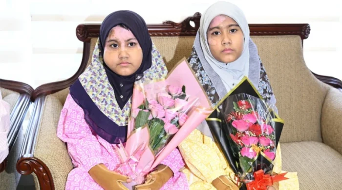 জাতীয় বার্ন অ্যান্ড প্লাস্টিক সার্জারি ইনস্টিটিউটে প্রায় সাড়ে তিন মাস চিকিৎসাধীন থাকার পর বাড়ি ফিরেছে মাইলস্টোন স্কুল অ্যান্ড কলেজে প্রশিক্ষণ বিমান বিধ্বস্তের ঘটনায় আহত দশ বছর বয়সী যমজ শিশু সারিনাহ