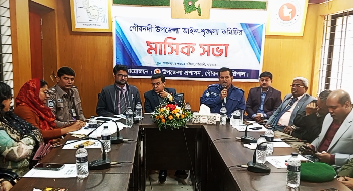 বরিশালের গৌরনদী উপজেলা আইনশৃঙ্খলা কমিটির মাসিক সভা অনুষ্ঠিত হয়েছে। উপজেলা প্রশাসনের আয়োজনে বুধবার ৭ জানুয়ারি ২০২৬ সকালে উপজেলা পরিষদ সভাকক্ষে উপজেলা নির্বাহী অফিসার মোহাম্মদ ইব্রাহিম’র সভাপতিত্বে আইনশৃঙ্খলা সভা অনুষ্ঠিত হয়।